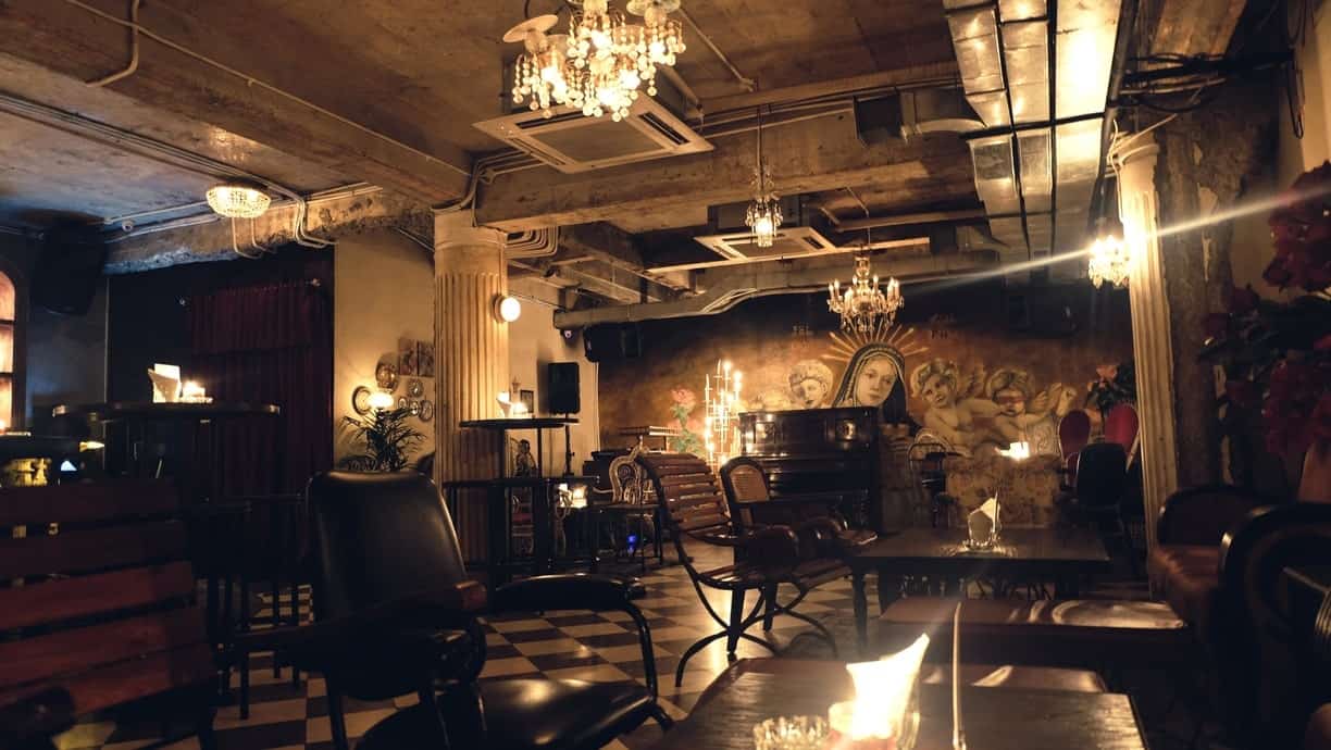 Dihiasi dengan patung malaikat dan lukisan Bunda Maria, memberikan kesan religius pada sentuhan dekorasinya. Suasana dekorasinya erat dengan sentuhan kebudayaan latin klasik berpadu dengan gaya industrial. Ditambah dengan iringan musik yang sedang hits turut menciptakan suasana cozy dan bersahabat. Jika Anda penggemar musik alternatif, pasti akan menyukai tempat ini. Tak heran setiap malamnya selalu dipenuhi oleh para pengunjung yang mencari tempat seru untuk hangout.