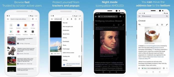 Kiwi is a new browser focusing on speed and security. The Kiwi browser uses the latest release of Chromium to ensure fast page loading on sites. One unique feature that this browser brings is that it’s the first Android browser that blocks hackers from using your device to mine crypto-currency. Using the Kiwi Browser is the ability to go to m.facebook.com and use Facebook Messenger to chat with your friends without having to install the Facebook application. Pop up ads can be annoying, but Kiwi includes a strong pop-up blocker.