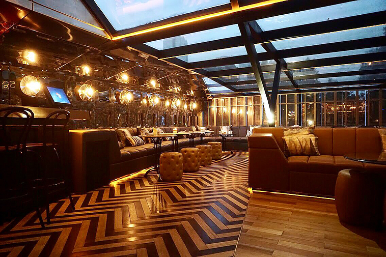 This bar has two different lounge areas, first one surrounded by wooden wine racks coupled with display of Audrey Hepburn made by mosaic tiles while second areas topped with transparent glass roofs, perfect for those who want to sip their drinks slowly and enjoy beautiful sky of Jakarta.
