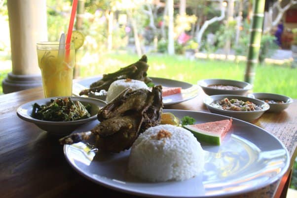 If you already know about the crispy duck menu, Bebek Bengil restaurant is the original home of this dish. This restaurant in Ubud provides a pleasant atmosphere with an open area and a view of beautiful rice fields. A must-try item on the menu is the crispy duck, served with three types of chili sauce: vegetables, sate lilit, and white rice. Priced at around IDR 150 thousand per serving, the delicious taste will leave you craving more.