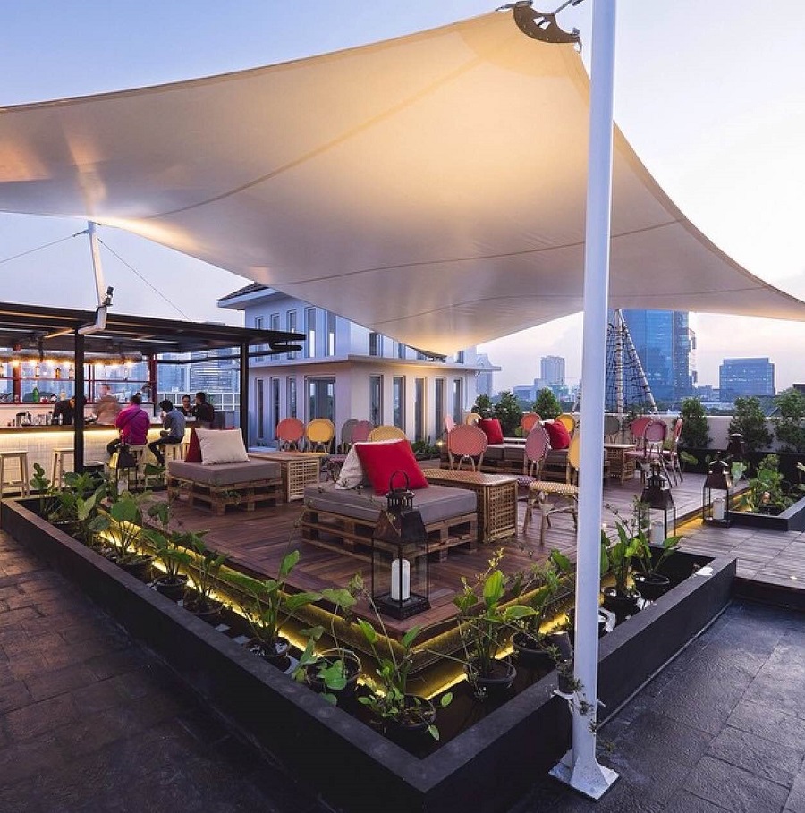 Terletak di kawasan Kemang, Anda tidak akan sulit menemukan SHY Rooftop karena lokasinya berada di gedung Papilion yang memiliki façade serba kaca. Tempat ini sering menyelenggarakan acara musik yang menampilkan musisi lokal terkemuka. Berada di SHY Rooftop, Anda bisa memilih mau duduk di lounge room yang beratapkan tenda besar berwarna putih di bagian luar, atau di bagian al fresco yang terletak di dalam. Soal minuman, Anda tidak akan kehabisan pilihan mulai dari cocktails hingga spirits. Sajian makanan lokal pun tersedia bagi Anda yang ingin mengisi perut. Dengan ambience yang menyenangkan, it’s definitely a place to go in Kemang!