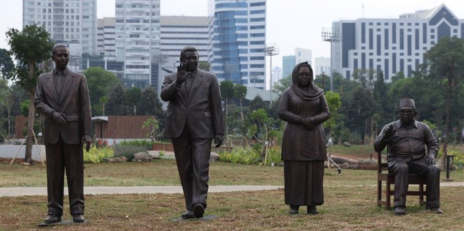 "7 statues of President of Indonesia at Hutan Kota GBK."