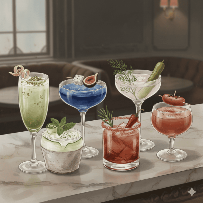 "Hidden Secret Recipe—Let's unveil the unique flavor twist within! No need to wait any longer. Here are the full details of six savory cocktail masterpieces ready to transform your palate and perspective when sipping!"
