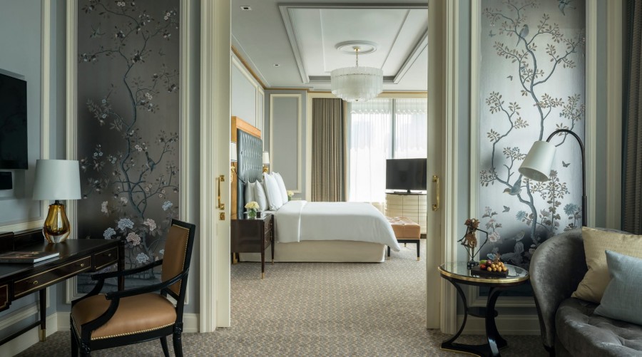 This city-view room features a separate living room and desk area. two LCD TVs, a refrigerated private bar, and more. You will also be fascinated by the luxurious bathroom with a dazzling design and complete amenities in it.
