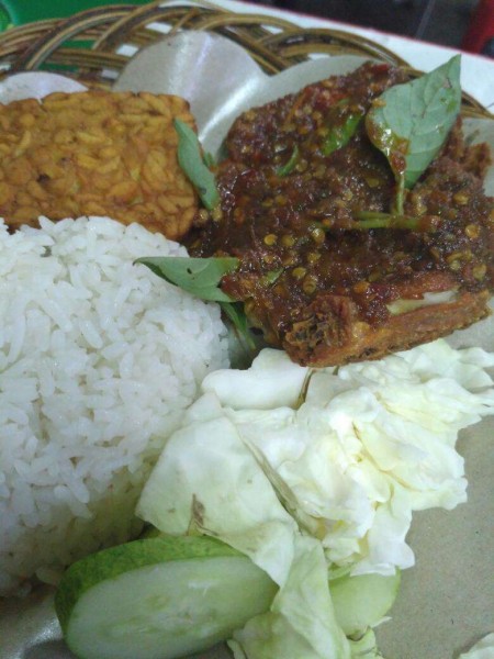 What makes this smashed chicken different from others? The answer is sambal (spicy paste made from chillies and spices). Bu Sri serves sambal terasi (spicy paste made from chillies and shrimp) more dry and crumbly than other sambal. At glance, it sambal looks like Rendang (beef in chilli and coconut mix) spice. There are three different levels of spiciness suit your taste, sweet and spicy, spicy and very spicy. Its sambal is perfect pairing for warm white rice and a wide array of dishes, such as chicken, ribs, tofu or tempeh you can enjoy at reasonable prices, starts from Rp25.000 per plate.