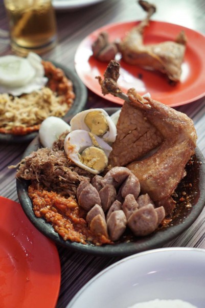 You probably agree if the key of delicious smashed chicken lies in its sambal (spicy paste made from chillies and spices). A mountain of spicy sambal in Warung Bu Kris ready to pamper your taste buds. This restaurant chains from Surabaya serves various of dishes, such as chicken, duck, tempeh, tofu, meatballs, egg and others above cobek tanah liat (clay plate) topped with spicy sambal. And it would be more perfect to be enjoyed with a bowl of sayur asam (vegetables in tamarind soup). You can enjoy a lot of spicy dishes here at affordable prices start from Rp20.000.