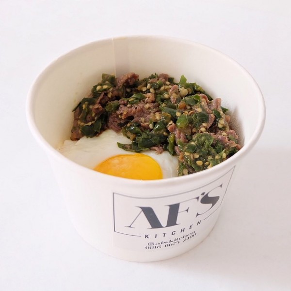 Other popular rice bowls in Jakarta you should not miss is Af’s Kitchen. This rice bowl offers favourite variants, Ayam Sambal Matah (Chicken with Sambal Matah), Daging Sambal Ijo (Beef with Green Chilies) and Chix Salted Eggs at affordable prices. Those there variants have addictive savory and spicy taste. It can be ordered as well for birthday, meetings and other events. When lunch time coming, you can order Af’s Kitchen by ojek online (motorbike service).