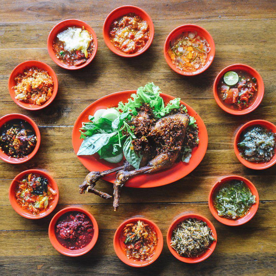 12 macam sambal geledek, mulai dari sambal domba, sambal mangga, sambal terasi dan masih banyak lagi menu sambalnya siap bikin lidah Anda bergoyang makin sedap dinikmati dengan ragam lauk gurih dan nasi hangat. Adapun menu rekomendasi yang wajib Anda pesan adalah Ayam Goreng Rempah Rawit, Kulit Goreng dan Sayur Asem.
