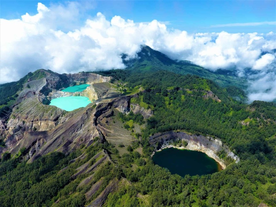 Terletak di Desa Pemo, Kecamatan Kelimutu, Kabupaten Ende, Flores. Danau ini berada di puncak Gunung Kelimutu. Memiliki tiga warna yaitu biru, merah, dan putih. Menurut kepercayaan penduduk setempat, ketiga warna yang terdapat pada danau memiliki arti masing-masing dan kekuatan alam yang sangat dasyat. Memang terdengar sedikit mistis. Danau berwarna biru atau Tiwu Nuwa Muri Koo Fai, merupakan tempat berkumpulnya jiwa-jiwa para muda mudi yang telah meninggal. Danau yang berwarna merah atau ​​Tiwu Ata Polo, merupakan tempat berkumpulnya jiwa-jiwa yang sudah meninggal yang semasa hidupnya melakukan hal-hal yang jahat seperti tenung. Sedangkan danau yang berwarna putih atau Tiwu Ata Mbupu, merupakan tempat berkumpulnya jiwa-jiwa orang tua yang telah meninggal. Namun faktanya, ​​tim peneliti LIPI menyimpulkan bahwa perubahan warna ketiga Danau Kelimutu merupakan pengaruh dari mekanisme vulkanis di kawasan tersebut. Tempat ini pertama kali ditemukan oleh seorang berkebangsaan Belanda bernama Van Such Telen pada tahun 1915. Dan tempat ini semakin dikenal dan didatangi para wisatawan dan juga ilmuan setelah Y.Bouman melukiskannya melalui tulisannya di tahun 1929.