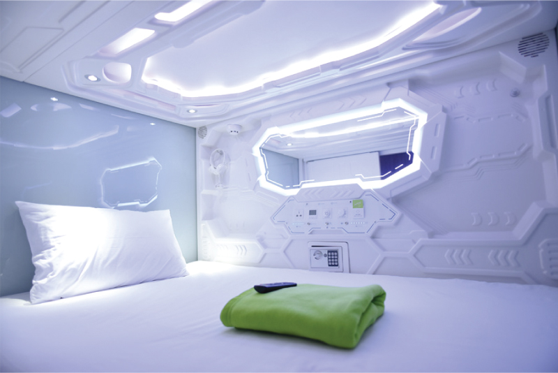 Masing-masing kapsul berukuran 2 x 1,2 m2 dengan desain bergaya modern. Di dalamnya telah dilengkapi AC, kasur, bantal dan linen berkualitas tinggi untuk memastikan Anda tidur nyenyak. Tak ketinggalan, ada juga LCD TV dengan berbagai saluran, Wi-Fi, dan meja laptop di dalam kapsul.
