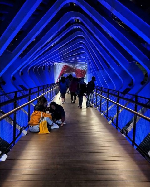 Saat naik ke arah jembatan utama sepanjang 68 meter, pejalan kaki akan dimanjakan dengan desain jajaran pagar putih dan lampu temaram yang menyala di malam hari. Lorong di jembatan utama inilah yang juga menjadi spot favorit untuk berfoto-foto. Dengan warna kekuningan, pantulan cahaya membuat jembatan ini terlihat semakin artistik saat malam hari. Pejalan kaki pun bisa menikmati pemandangan langit Jakarta dan gedung perkantoran di sekitarnya karena atap JPO dibuat transparan.