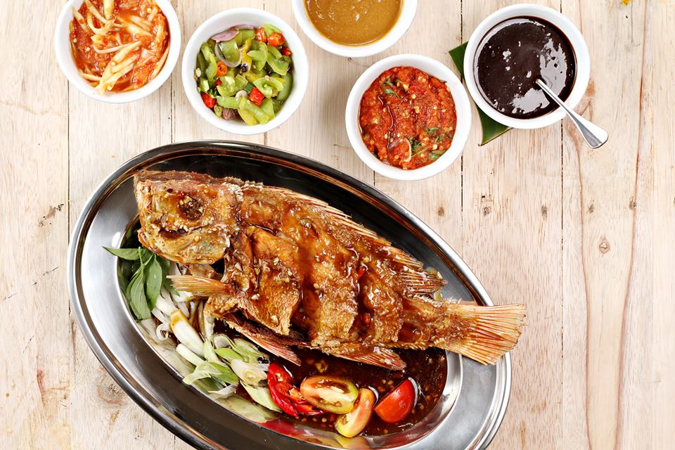 Untuk menu ikan andalan, Anda perlu cicipi Ikan Sukkang Bakar Rica Merah, Ikan Bawal Bintang Goreng Dabu-Dabu, dan Ikan Kudu-Kudu Goreng Telur Asin. Selain ikan, pesan juga Udang Putih Goreng Saus Padang, Kerang Tim Bawang Putih, atau Kepiting Lada Hitam. Hmmm… Dijamin Anda akan puas melahap tiap menunya. Akhiri santap Anda dengan Coconut Pudding.