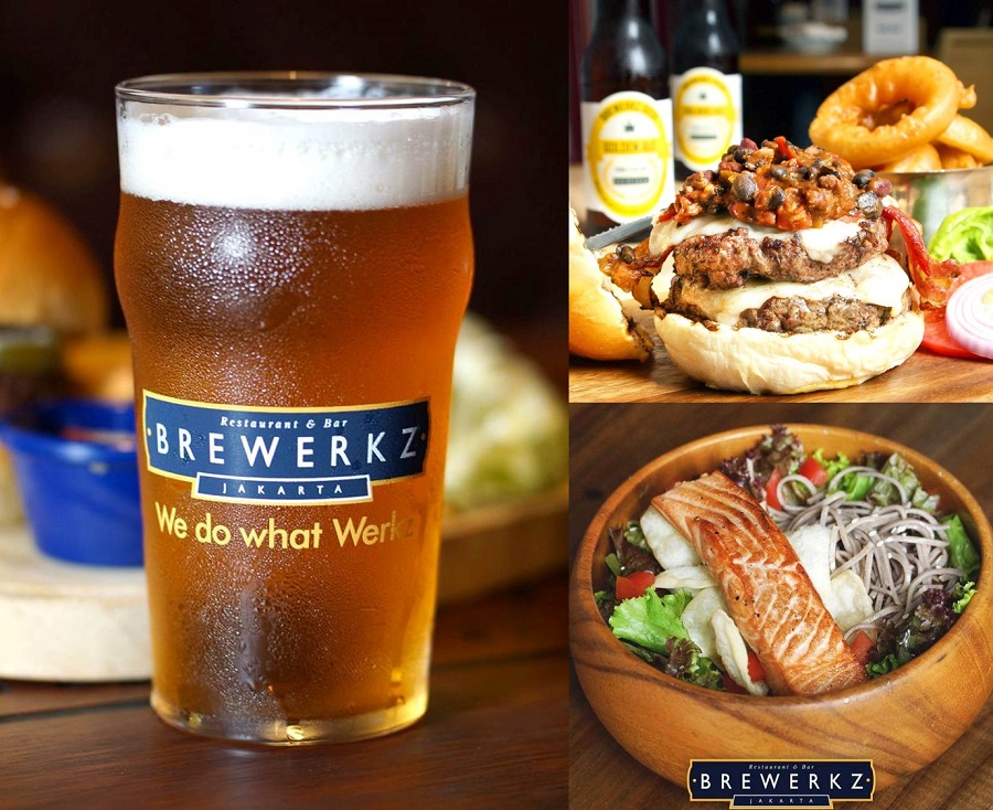 Untuk makan berat, tempat yang memiliki cabang lain di Senayan City ini menyajikan steak, pizza, burger, tapas, dan juga hidangan Asia. Selain bir, Brewerkz juga menyajikan mocktail, wine, cocktail, dan liquor. Tak melupakan pecinta dessert, Anda bisa memesan Warm Brownie atau Strawberry Cheese Cake juga di sini.