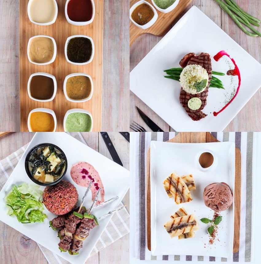 Para carnivores wajib mencoba steak di OsakaMOO yang ditawarkan dalam beberapa grade daging sapi, antara lain New Zealand, Australia, Wagyu 2-3, sampai Wagyu Grade 4-5. Selain daging sapi, tersedia juga daging ayam, ikan gindara, salmon, dengan beragam pilihan side dish seperti mashed potato apple, mashed potato ginger, edamame anchovies, grill baby potato, atau edamame raisin. Unik, bukan? Sausnya pun tak kalah variatif, seperti Wasabi Mayonnaise, Asian Chummicuri, Coriander Miso, Green Horenzo, dan Brown Lemon.