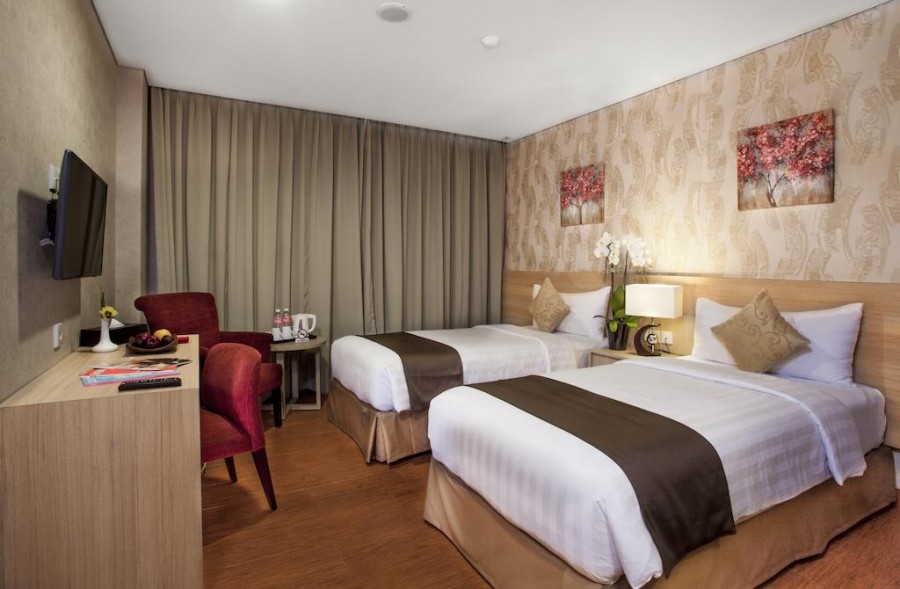 Fasilitas berkualitas termasuk televisi, alat membuat kopi dan teh, akses internet Wi-Fi, layanan penatu, layanan antar – jemput bandara serta akses mudah ke seluruh sudut kota Jakarta, seperti gedung bersejarah, taman, mal dan objek wisata lain menggunakan transportasi umum hingga kolam renang dapat Anda nikmati selama menginap di sini. Harga kamarnya mulai dari Rp216.000 per malam.
