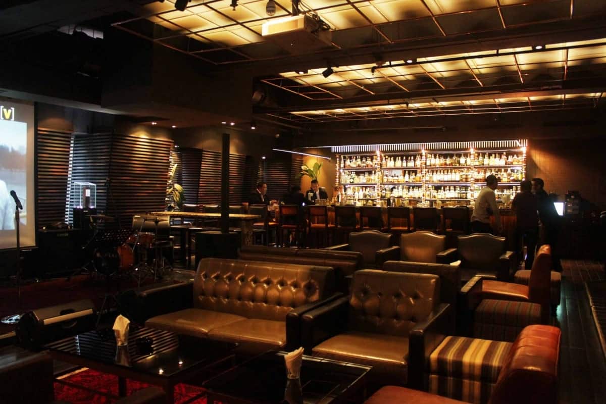 Bar seluas 225 m² ini memiliki nuansa yang halus namun tetap terlihat elegan dengan penggunaan kayu dan pencahayaan yang agak redup agar menciptakan suasana yang maskullin.