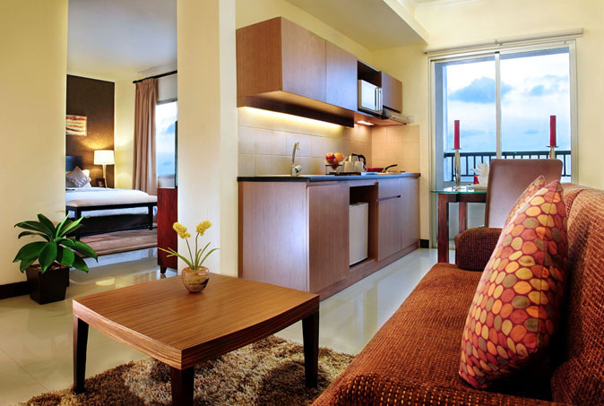 Ketika bermalam di hotel yang satu ini, pastinya Anda akan merasakan sensasi menginap yang berbeda dari hotel pada umumnya. Aston Marina Hotel yang terletak di kawasan Jakarta Utara ini memiliki gaya hotel seperti apartemen. Yup! Di dalam kamarnya Anda bisa merasakan fasilitas seperti living room, kitchenette, dan juga balkon yang membuat Anda seperti sedang bermalam di sebuah apartemen.
