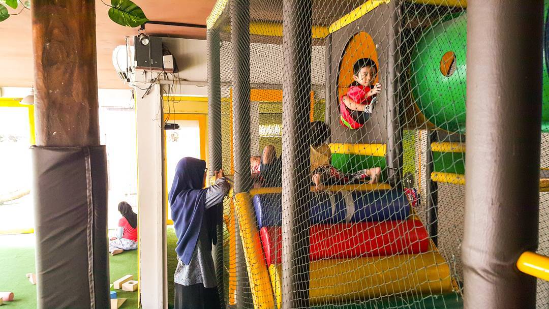 Sementara itu, area outdoor yang dilengkapi dengan beberapa permainan, seperti jungkat-jungkit, trampoline, ayunan dan perosotan diberi jaring-jaring penahan panas agar tidak terlalu silau jika Anda dan buah hati datang di siang hari. Menariknya, tiket masuk berlaku selama satu hari penuh, jadi saat buah hati merasa bosan dan ingin keluar dapat kembali dan melanjutkan aktivitas seru di Rumah Main Main dengan syarat tiketnya tidak hilang.