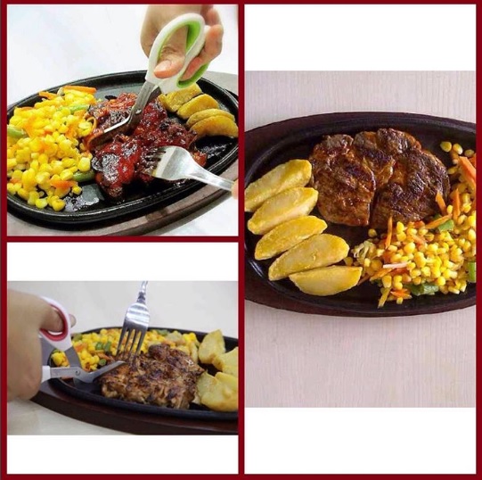 Bentuk guntingnya pun tidak biasa yakni pisau guntingnya yang sedikit bengkok dan akan memudahkan Anda untuk memotong daging steak-nya.