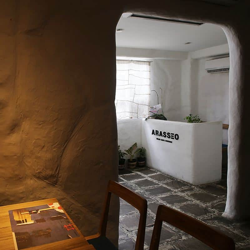 Terselip di dalam Jl Senopati, Arasseo adalah restoran dan bar berkonsep Korea. Interiornya merupakan campuran antara estetika Korea dan Skandinavia. Dinding batu berwarna putih membuatnya nampak seperti lubang di dalam gua bawah tanah yang dingin. Meski dirancang sederhana tapi tetap terlihat artistik.