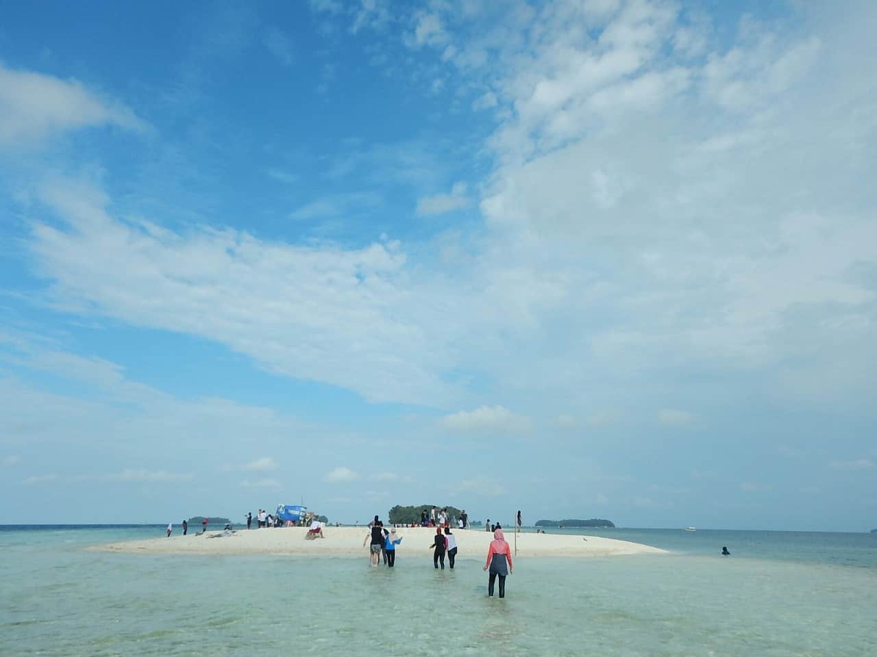 "Pulau Gosong, destinasi wisata di Kepulauan Seribu berupa gundukan pasir yang eksotis."