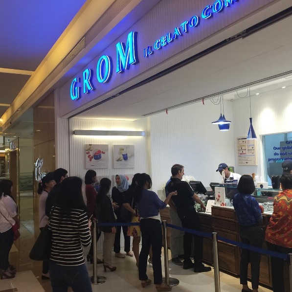 Siapa yang bisa menolak kalau ditawarkan es krim? Apalagi kalau yang ditawarkan adalah es krim dengan gaya Italia, yakni gelato. Salah satu kedai gelato yang akhir-akhir ini ramai diperbincangkan adalah GROM. Kedai gelato asal Italia ini telah membuka tiga cabang di Jakarta, di mana gerai pertamanya terletak di Pacific Place, Jakarta Selatan.