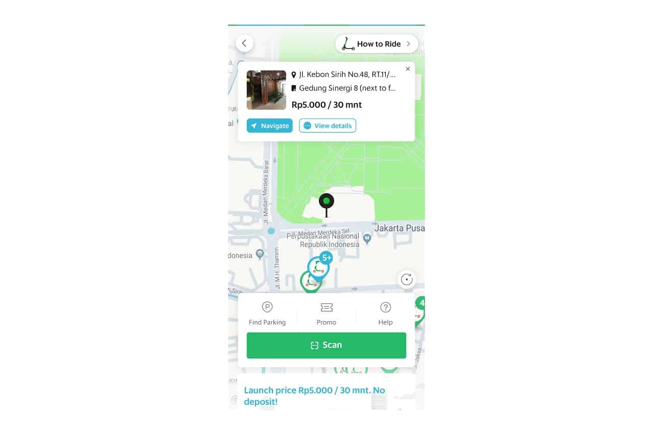 Bagi Anda yang tertarik menggunakannya, Anda bisa melacak lokasi parkir Grabwheels terdekat melalui opsi eScooter di aplikasi Grab. Lalu akan muncul peta lokasi Anda berada. Jika lokasi Anda berada dekat dengan titik parkir GrabWheels, maka akan muncul titik-titik hijau yang menandakan lokasi parkir GrabWheels beserta informasi jumlah skuter yang tersedia.