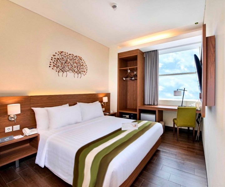 Sebanyak 110 kamarnya dilengkapi dengan fasilitas berkualitas, mulai dari akses Wi-Fi super cepat, TV LED 40 inci, microwave, refrigerator, rain shower, ruang tamu dan dapur.