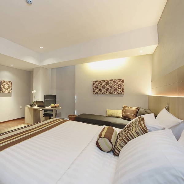 Baik Superior, Deluxe maupun Premier Room-nya sama-sama menawarkan kenyamanan maksimal dengan desain yang eksklusif, termasuk lantai parket, jendela besar yang menampilkan pemandangan kawasan Lebak Bulus dan shower yang ada tekanan airnya, sehingga terasa seperti sedang dipijat.