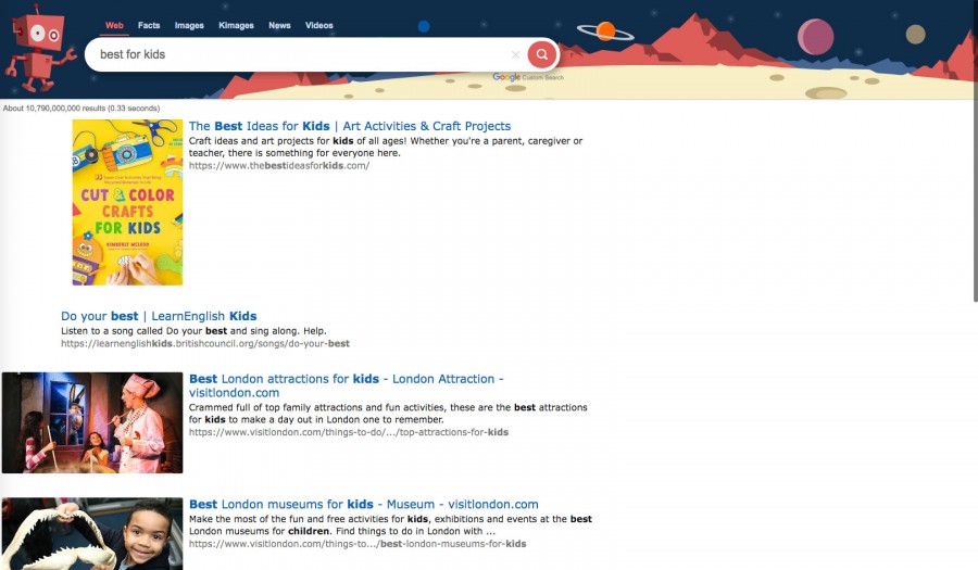 Sekarang Anda tak perlu khawatir lagi untuk memperkenalkan internet kepada anak, karena sudah ada situs mesin pencari untuk anak-anak yang didukung oleh Google yaitu Kiddle.co. Situs yang dilengkapi dengan sistem Safe Search buatan Google ini memiliki desain warna merah muda pastel dan gambar kartun robot luar angkasa sebagai logonya.