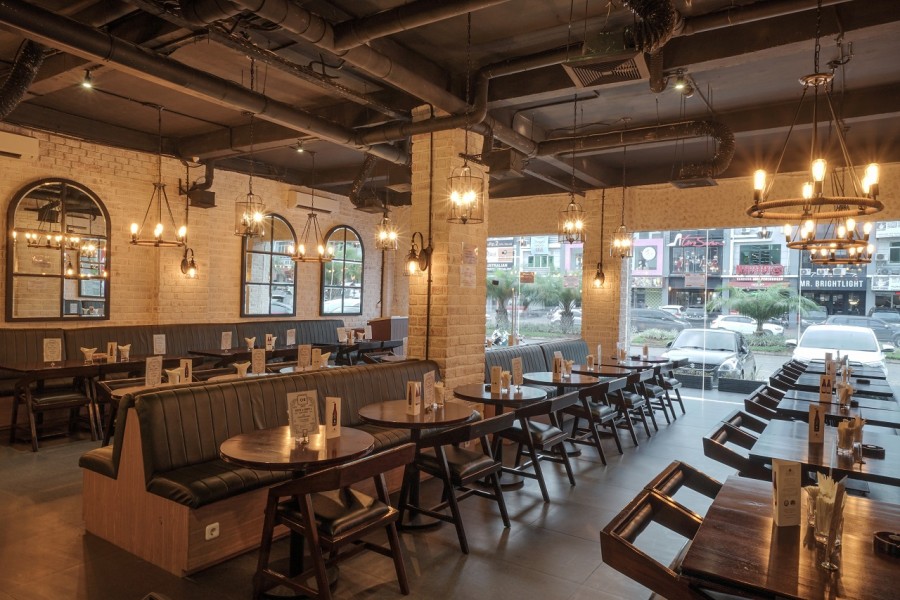 Moray Kitchen & Soju Bar terdiri dari dua lantai berbeda, lantai pertama merupakan restoran bergaya industial. Dinding batu berwarna putih membuatnya nampak sederhana namun tetap terlihat artistik.